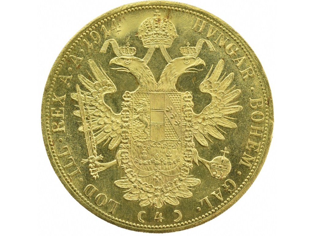 Moc hezký 4 dukát Františka Josefa I. z roku 1914