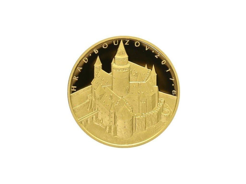 Zlatá mince hrad Bouzov vydaná v roce 2017 ČNB