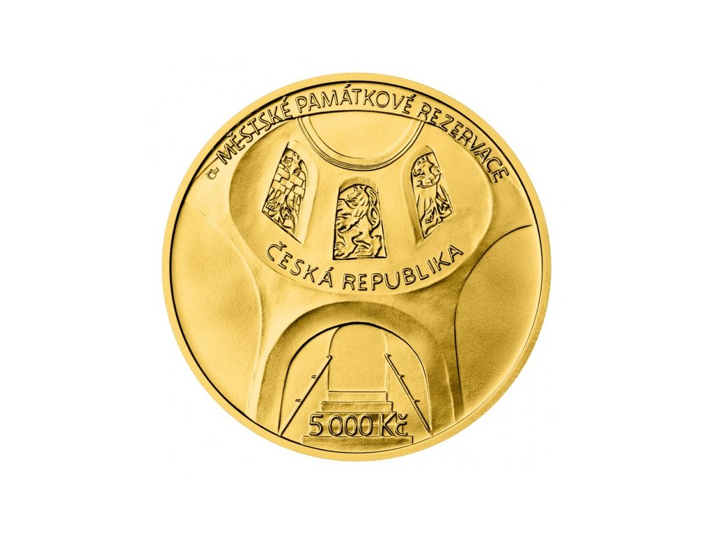 Zlatá mince vyobrazující město Hradec Králové vyražená Čnb roce 2023