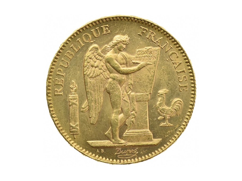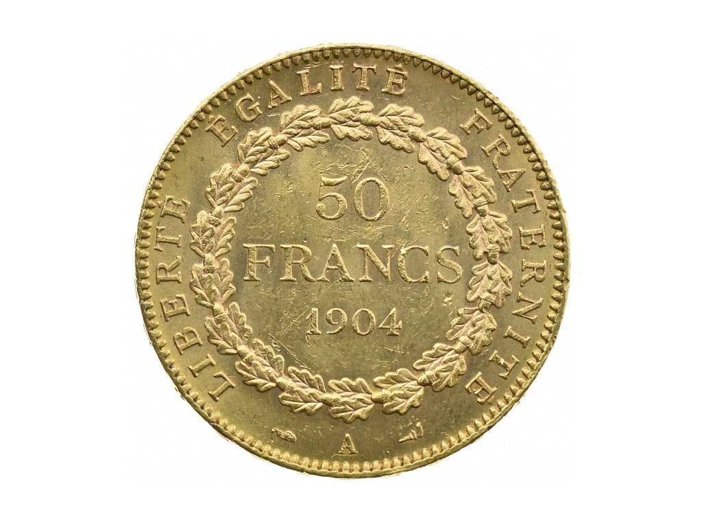 Vzácný Francouzský 50 frank s Andělem píšícím ústavu.