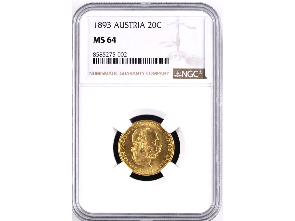 Mimořádně zachovalá Rakouská 20 koruna Františka Josefa I. z roku 1894