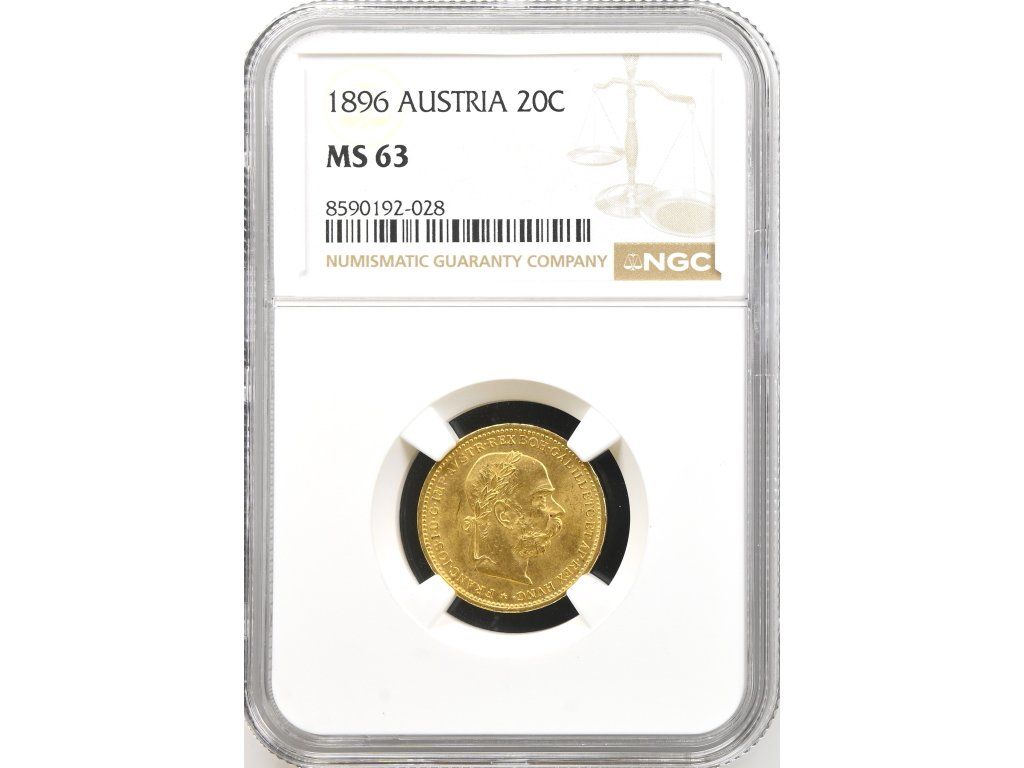 Pěkně zachovalá Rakouská 20 koruna Františka Josefa I. z roku 1896